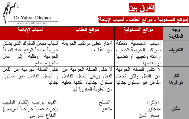 لا تنفى الصفة الجرمية عن الفعل ولكن تجعل الفاعل غير مسئول جنائيا